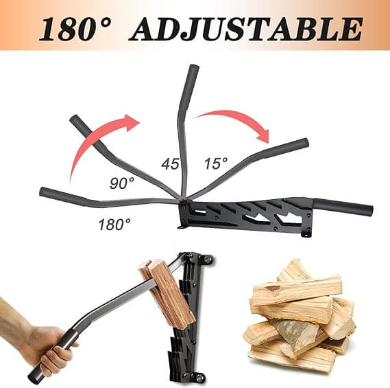 There are bolt holes in the base so it can be secured to a tree stump or other wood stakes. This provides extra stability and height for splitting wood more efficiently, while the 180° adjustable angle makes cutting easier and faster!
